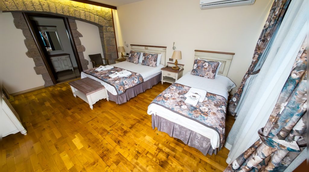 65m² alana sahip odalarımızda 1 Queen Bed (Geniş Çift Kişilik Yatak) ve 2-3 tek yatak bulunmaktadır.