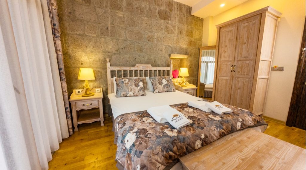 12 m² olan standart odalarımızda çift kişilik yatak bulunmaktadır.